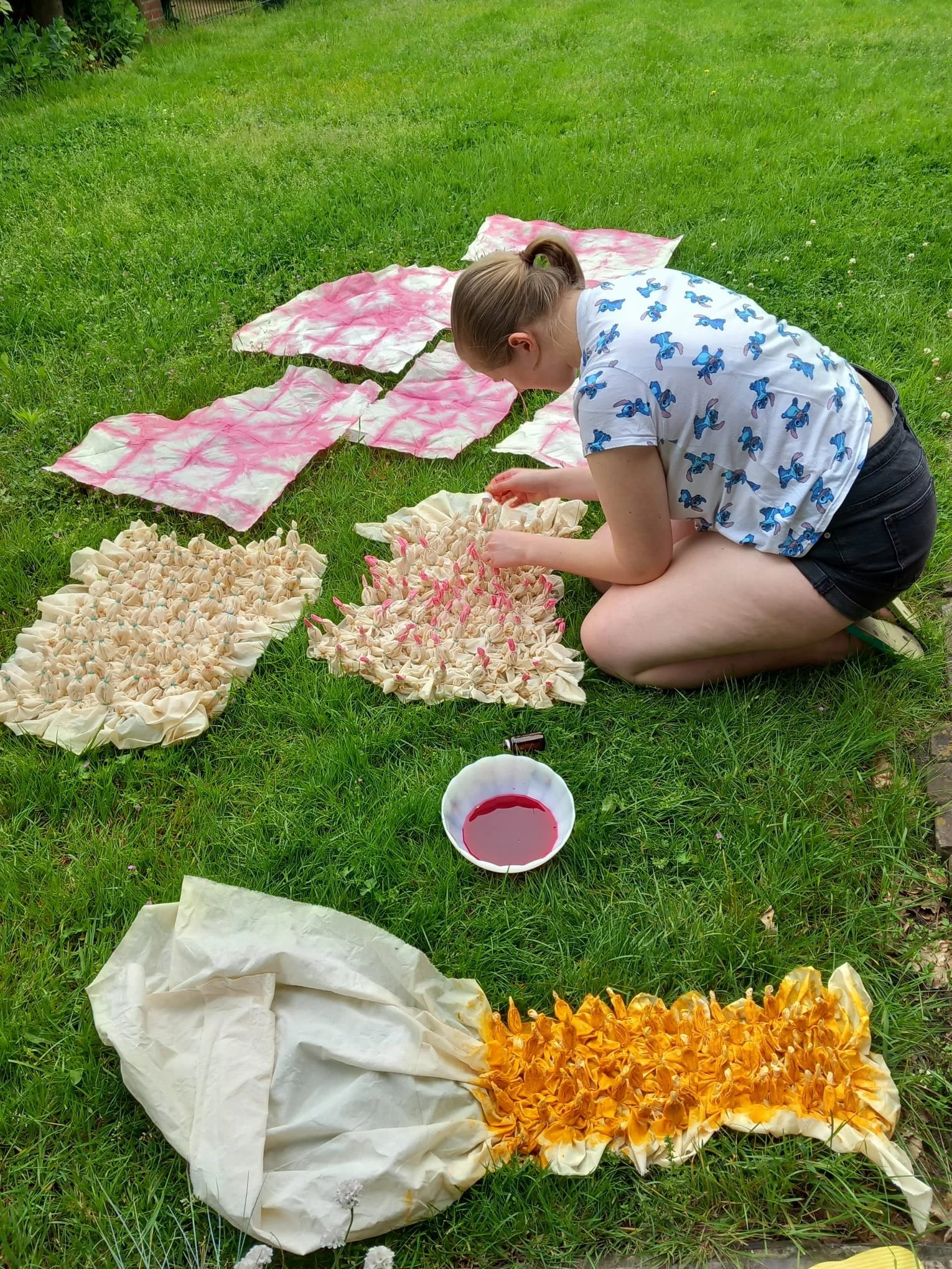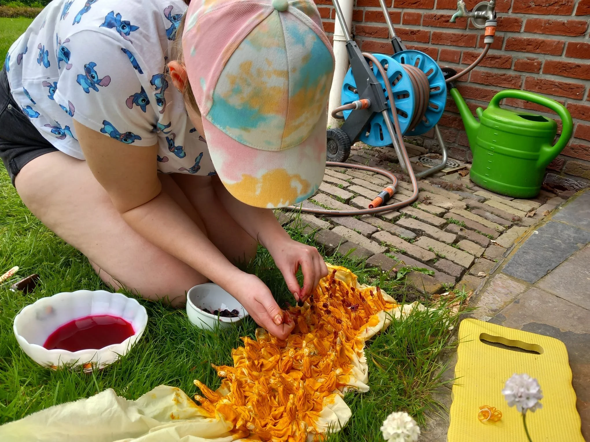 Geel staat voor zelfvertrouwen, geluk en vrolijkheid, dat is hoe ik in het leven sta. Roze staat voor kracht en vastberadenheid, terug te zien in mijn handgemaakte werk. Van buiten straal ik leven en rust uit, in het kostuum groen. Vanbinnen ben ik één en al creativiteit, paars.