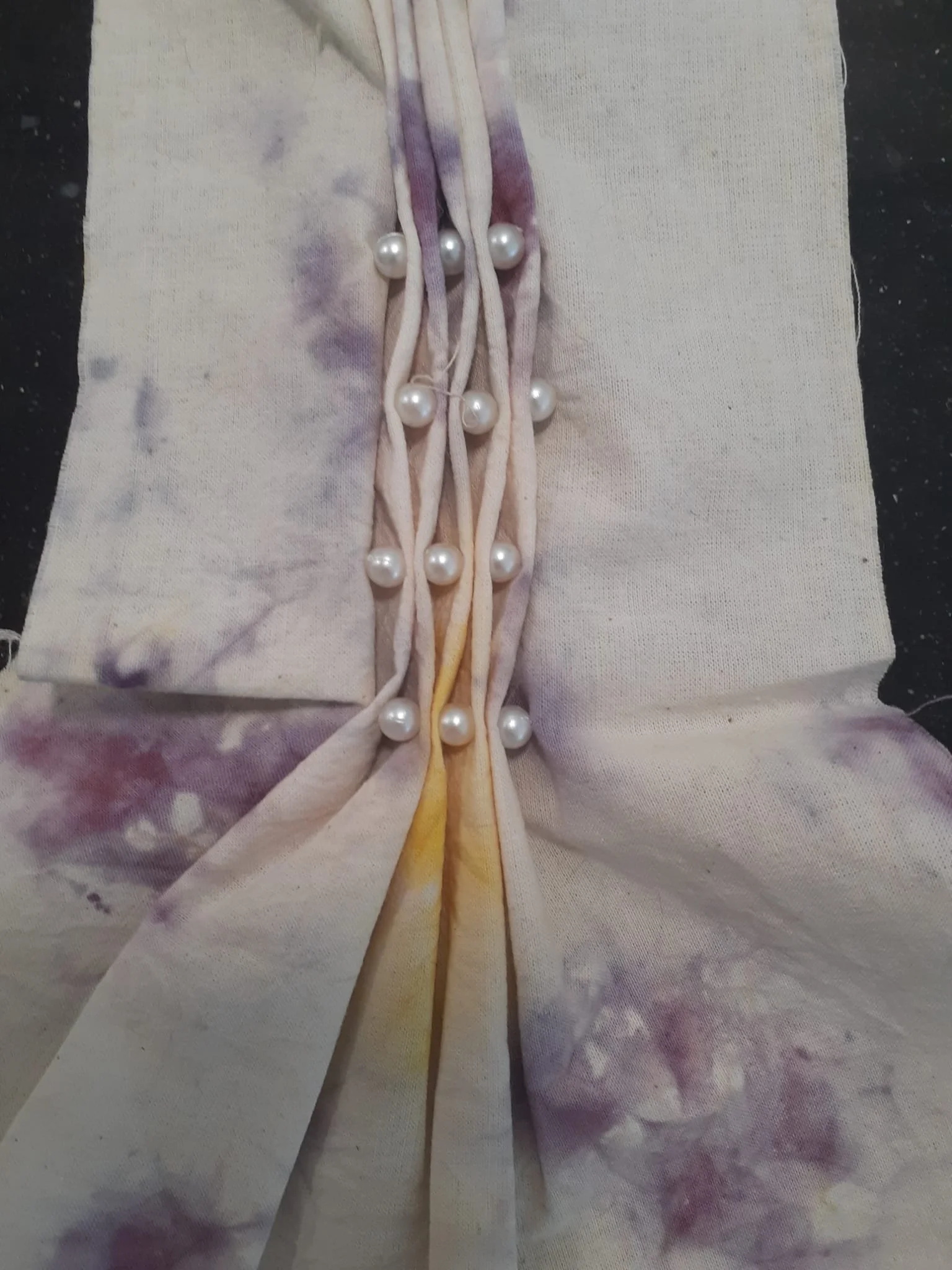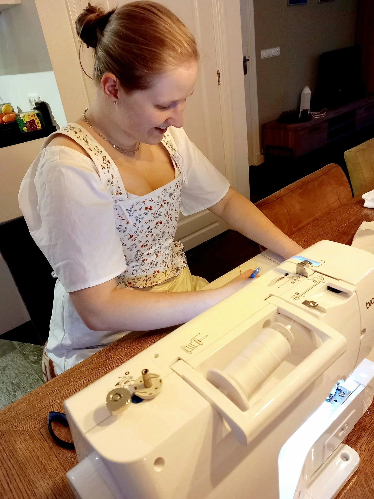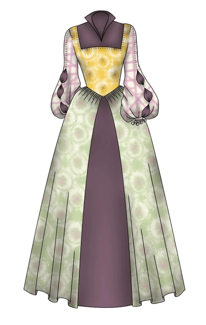 In de 16e eeuw stond men voor een grote verandering. Er werd dus veel geëxperimenteerd met vorm en kleur. Hier kan ik, als ontwerper, mijn eigen draai aan geven. Zowel materiaal als duurzame verfstoffen kennen gelijkenissen tussen toen en nu. Met herkenbaar silhouet en print van de stof, wil ik zowel het verhaal van de 16e eeuw vertellen, als het verhaal van mezelf. Het kostuum is een echte combinatie van het verleden en het heden, en geeft, in dit geval, een duidelijke karakterschets van de maker.